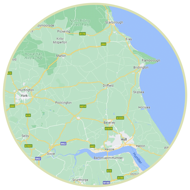 We cover Bridlington, Scarborough, York, Selby, Goole, Market Weighton, Hull and all surrounding towns and villages including, Burton Agnes, Carnaby, Sewerby, Primrose valley, Filey, Eastfield, Scalby, Wykeham, Snainton, Octon, Sledmere, Rillington, Malton, Sheriff Hutton, Strensall, Huntington, Heslington, Stamford Bridge, Pocklington, Wheldrake, Escrick, Brayton, Eggborough, Snaith, Howden, Gilberdyke, Bishop Burton, Brough, Hessle, Cottingham, Beverley, Hornsea, Skipsea and more.
